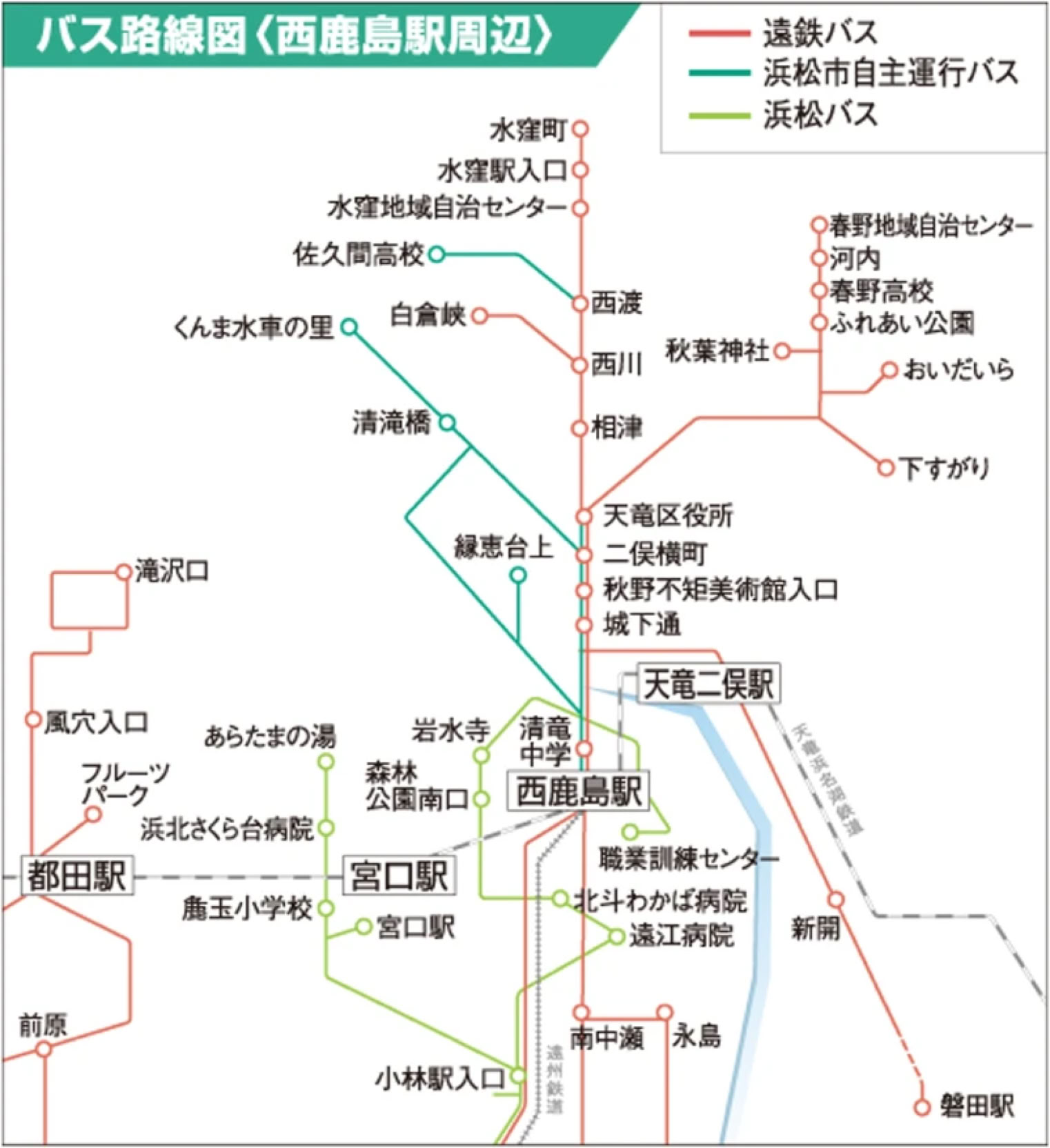(遠鉄バスのバス停間ルート検索、時刻表はこちらから)